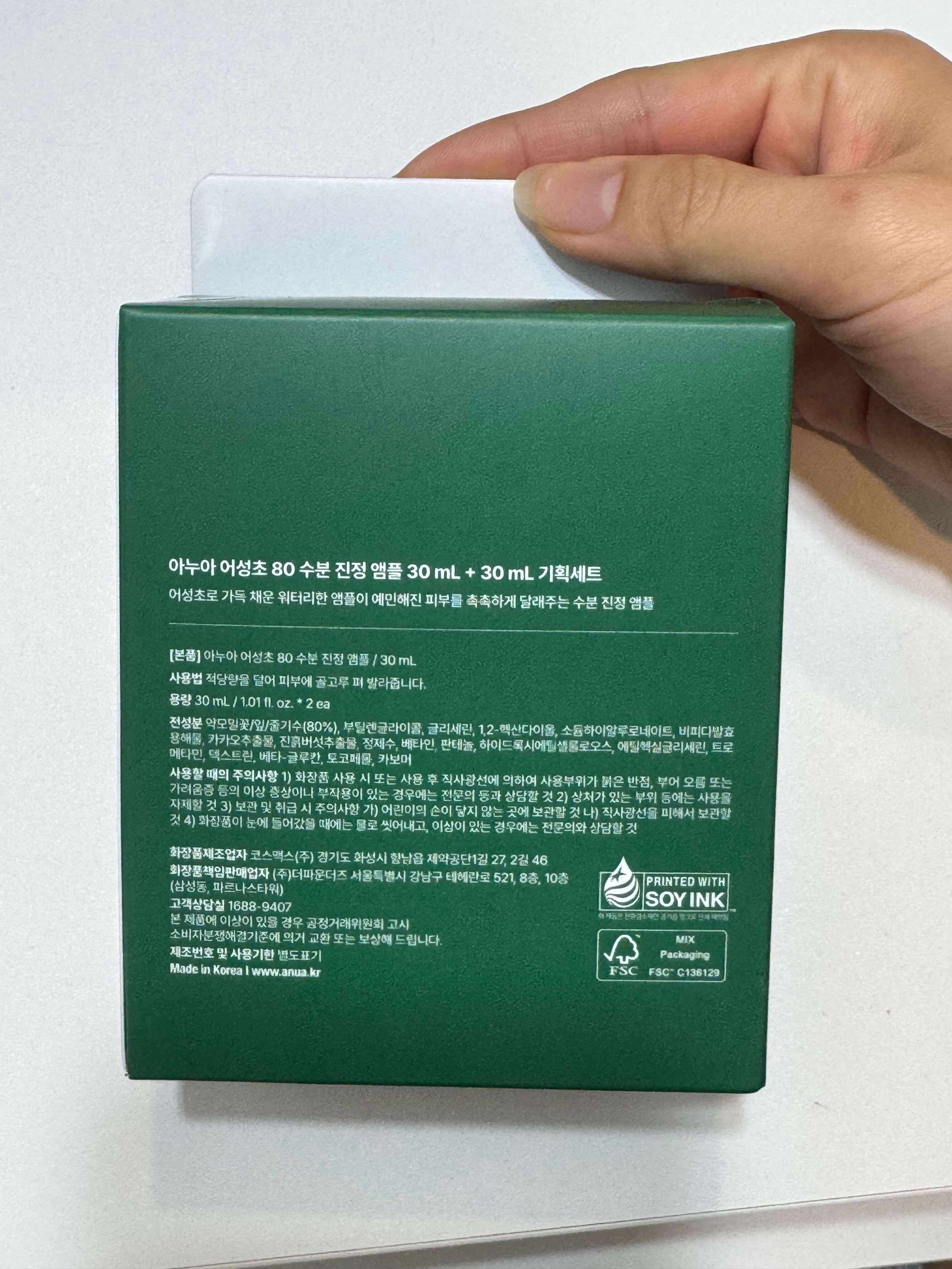 예전에 아누아 어성초 세럼 쓸 때는 선물 받은 거라 이런 효능이 있는지 모르고 그냥 썼는데 트러블 진정, 24 시간 수분 지속, 여드름성 피부 사용에 적합한 수분 진정 엠플이었더라고요.