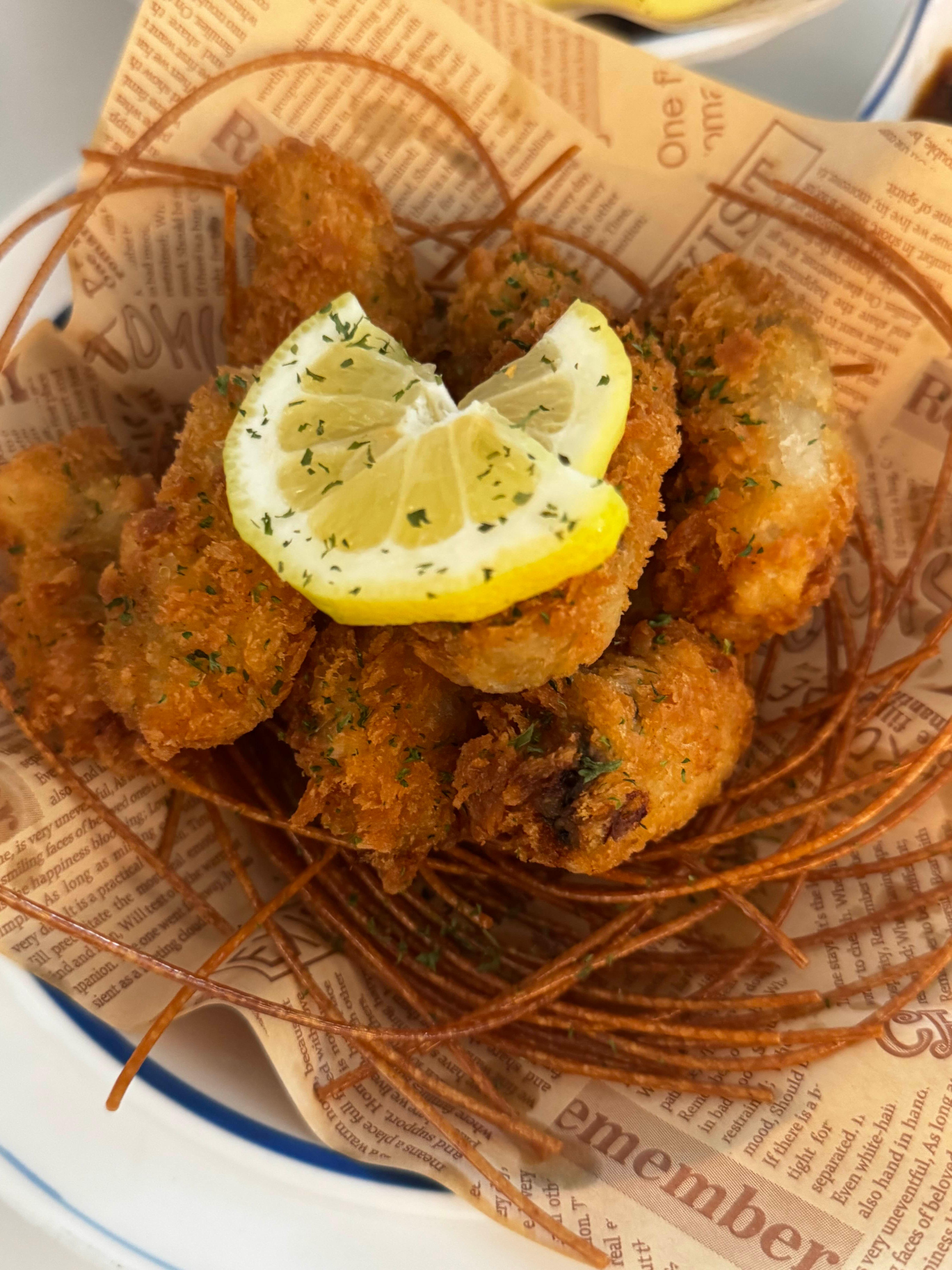네명이서 파스타 한 개씩으론 아쉬워서 허니갈릭 가라아게 + 굴튀김 주문ㅎㅎ