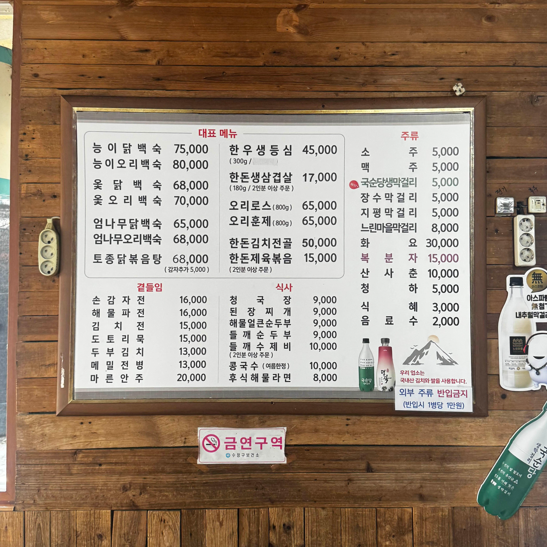 매봉산장 메뉴