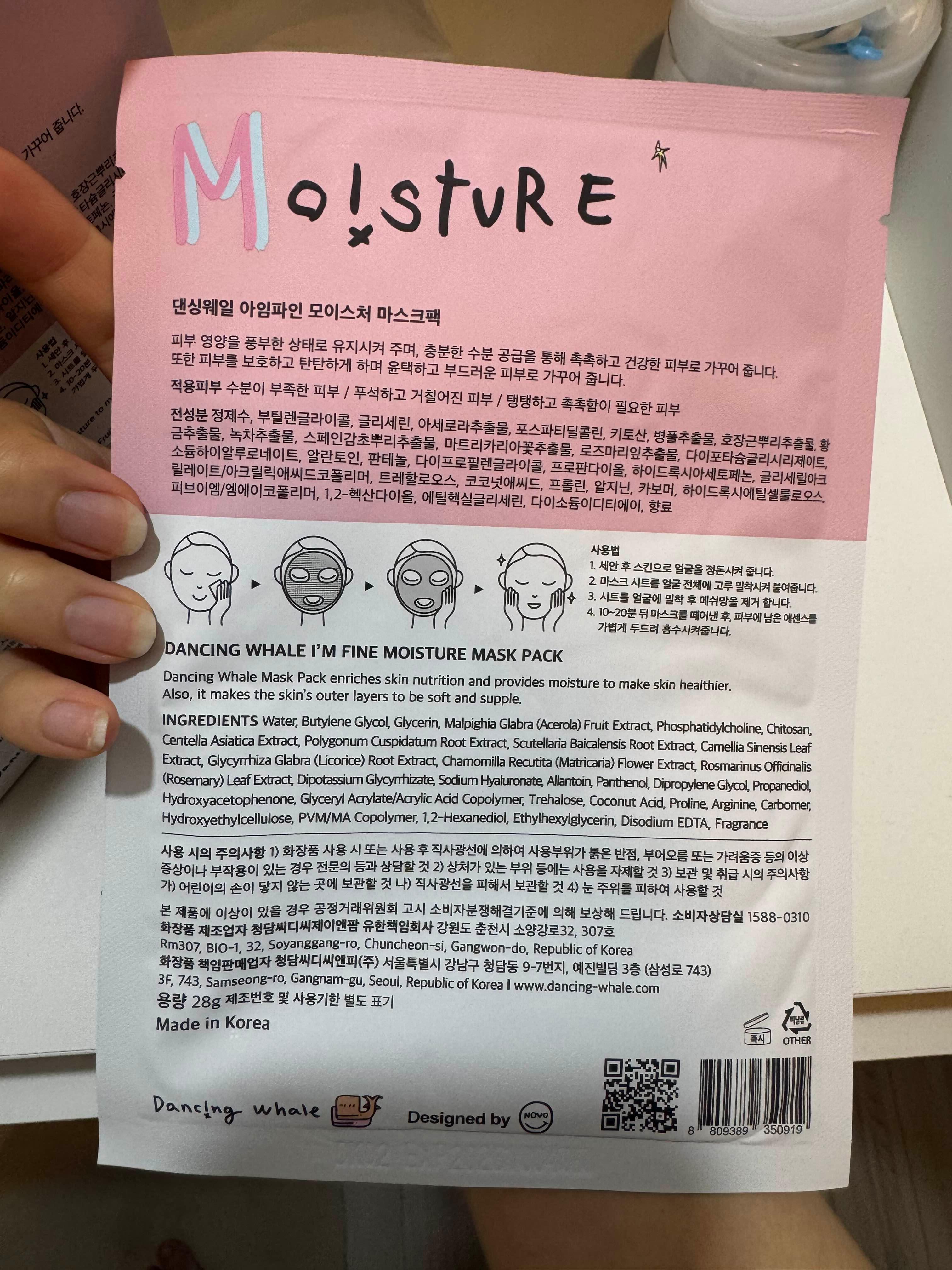 댄싱웨일 모이스저 마스크팩 dancing whale I'm Fine Moisture Mask Pack 사용 후기