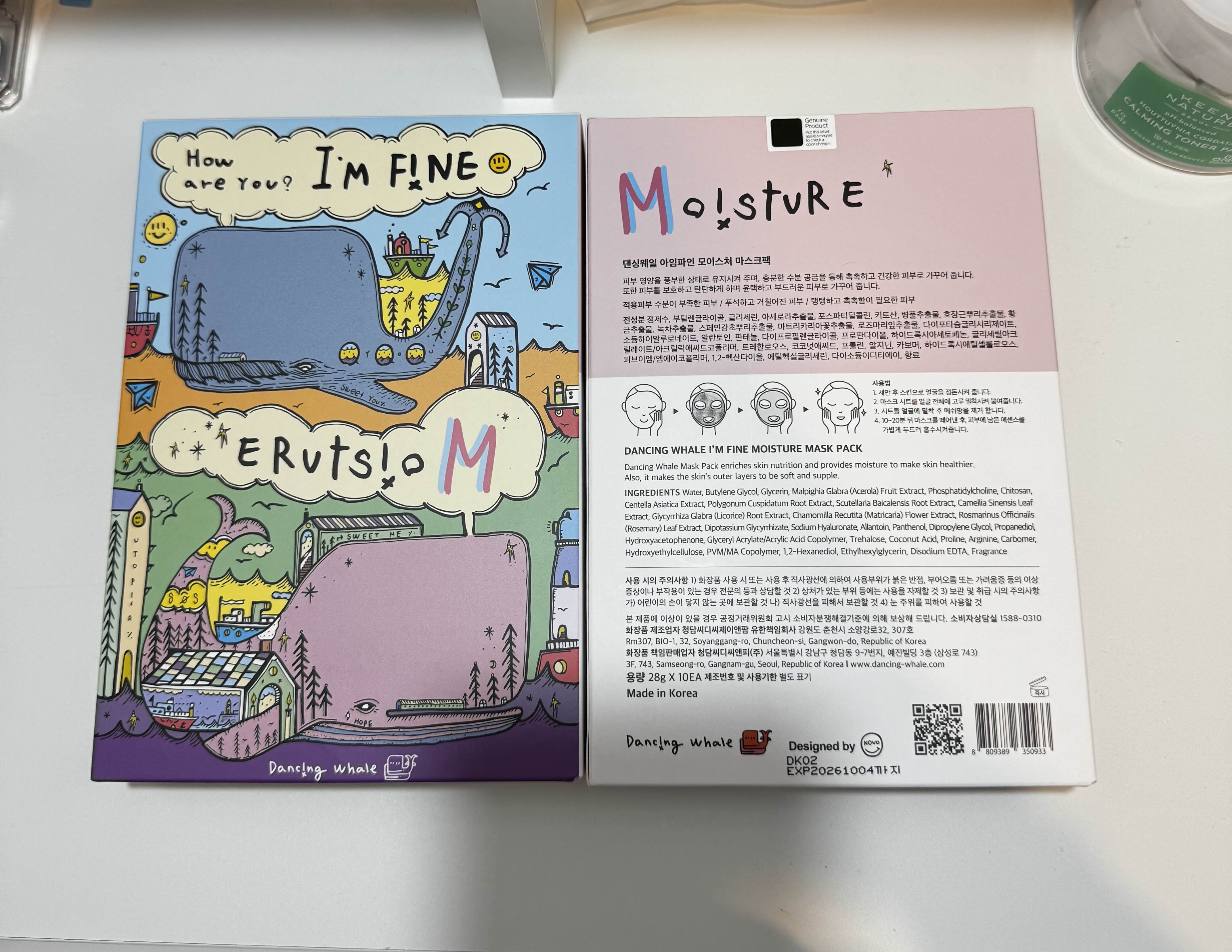 피부관리가 시급했는데 마침 친구가 선물해 준 댄싱웨일 마스크팩! (dancing whale I'm Fine Moisture Mask Pack)