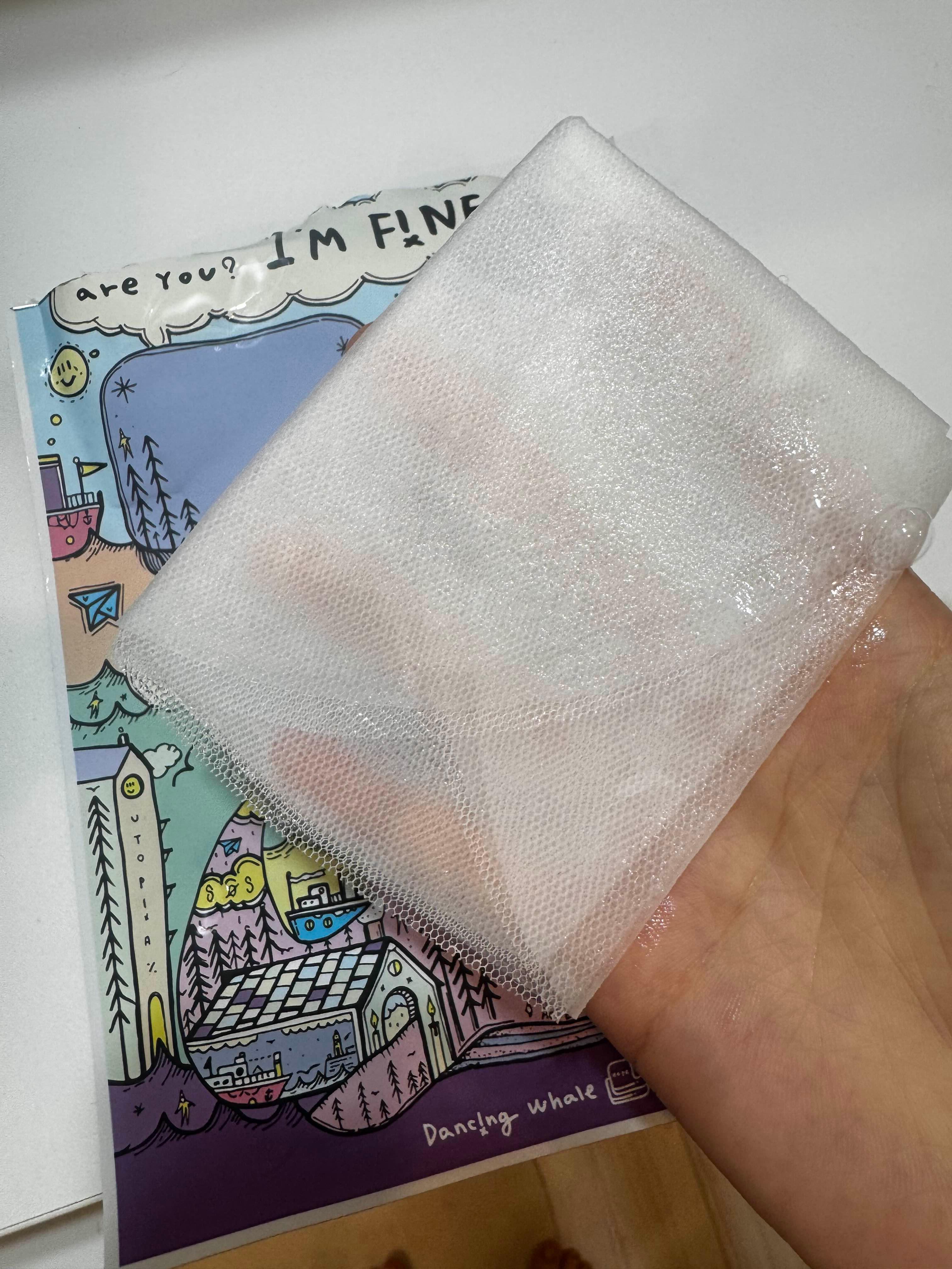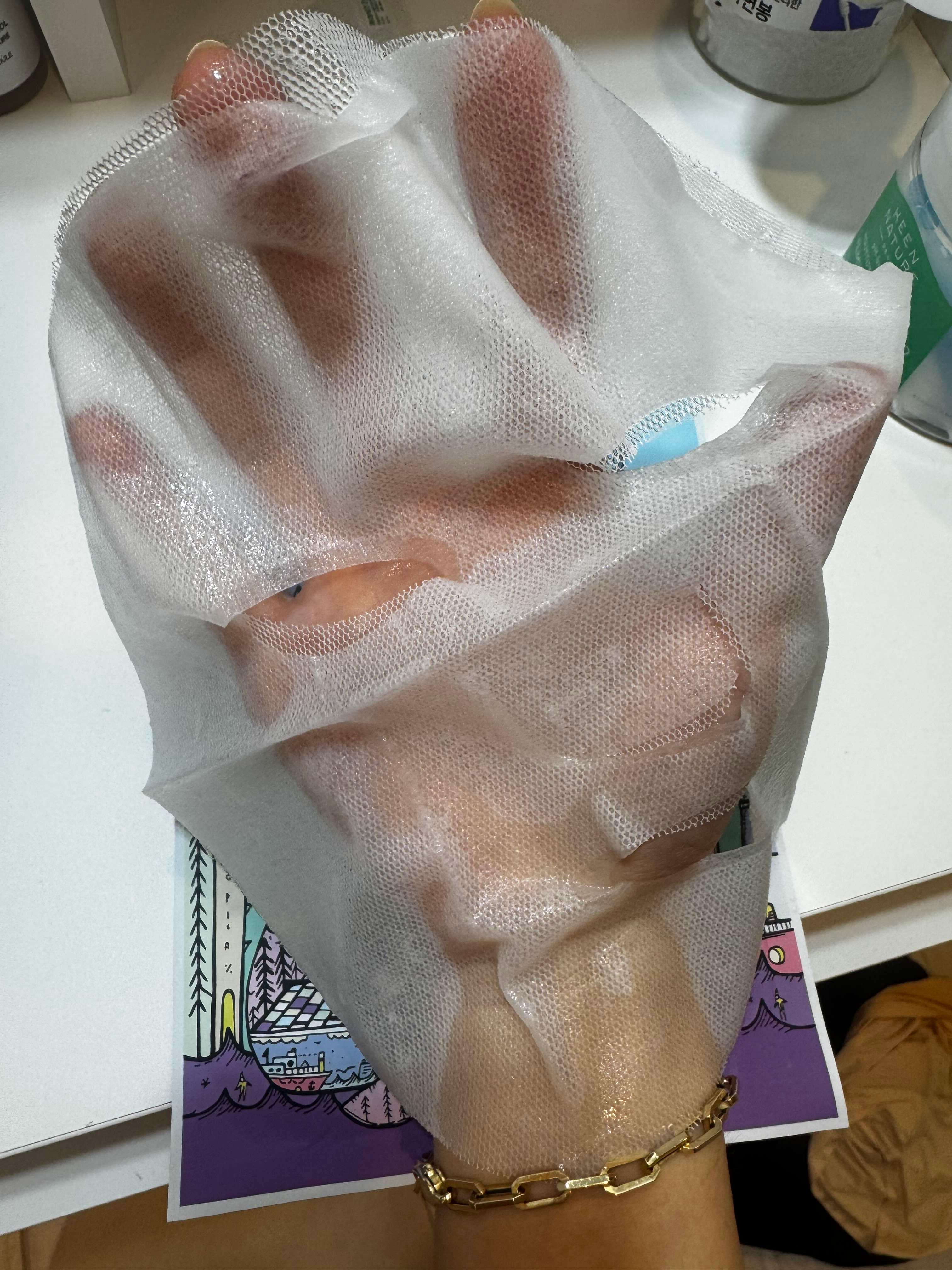 메쉬망을 제거하고 마스크 시트만 얼굴에 맞게 붙여주면 된다. 처음 시트를 꺼냈을 땐 내가 아는 비슷한 마스크팩인 줄 알았는데 아니었다....!!