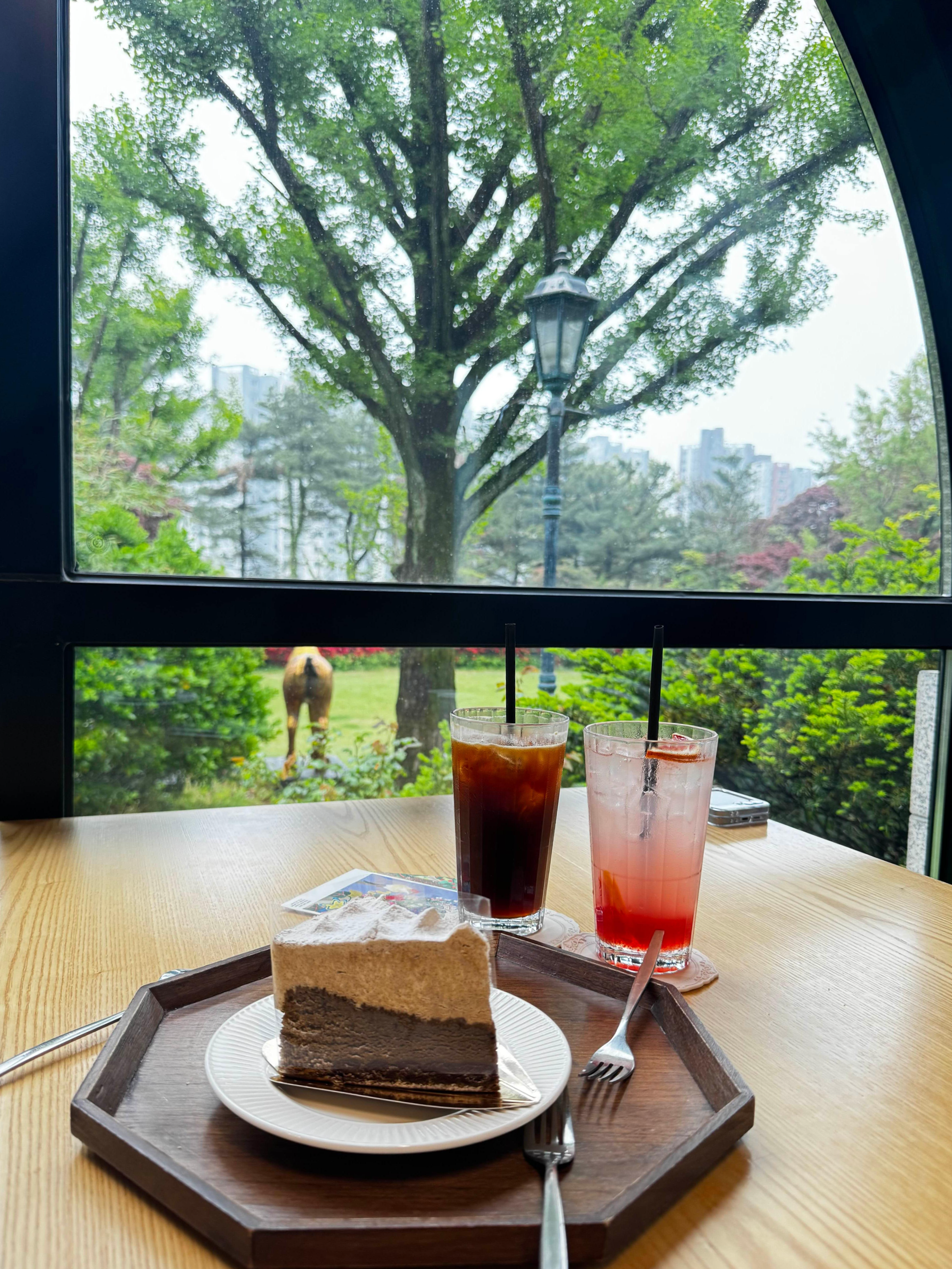 분위기와 인테리어 카페 내부는 넓고 통창으로 햇살이 가득 들어와서 따뜻하고 포근한 느낌이었어요. 고급스러운 우드 인테리어에 현대미술 작품들이 적절히 배치되어 있어서 여유로운 분위기 만끽ㅎㅎ 특히 통유리창 앞 자리는 인기 포토존! 밖으로는 작은 정원과 산책로가 보여서 차 한 잔과 함께 자연도 같이 느낄 수 있었어요.
